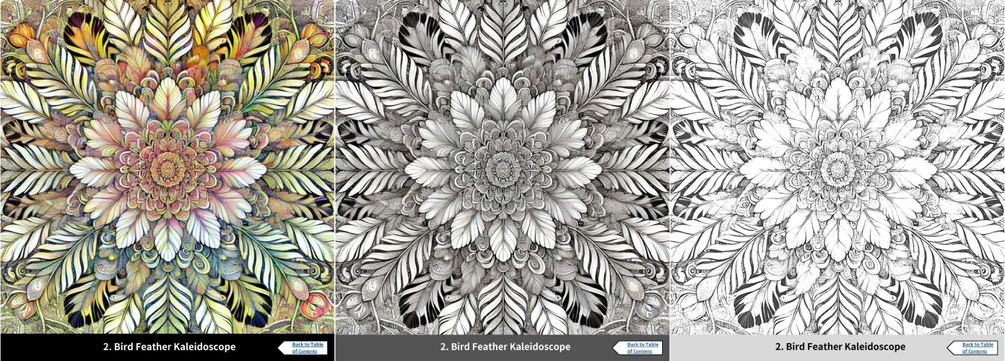 * High-resolution line-art templates showcasing intricate kaleidoscope designs